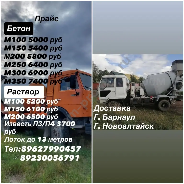 Доставка бетона всех марок,Любые объёмы. От1,2,3,5,6,7,8 кубов.