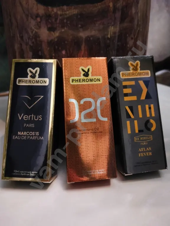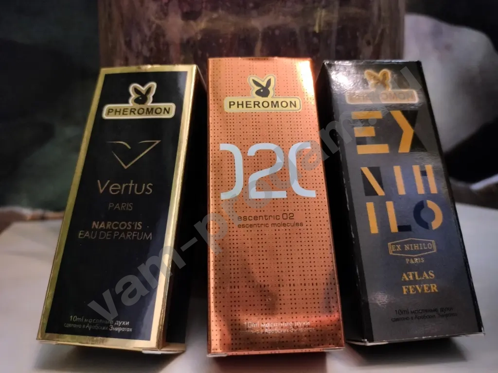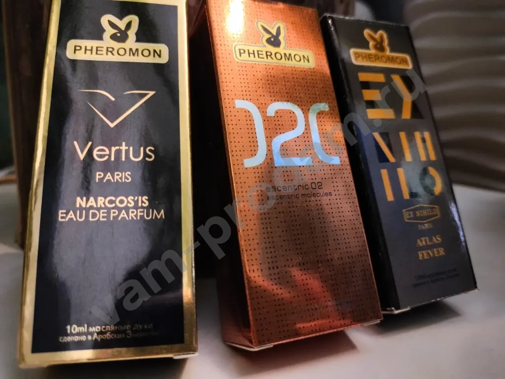 Масляные духи "Pheromon" производства ОАЭ - 3 шт. Флаконы 10мл - полные. Представляют собой альтернативную версию ароматов известных брендов, очень близкие к оригиналам.
