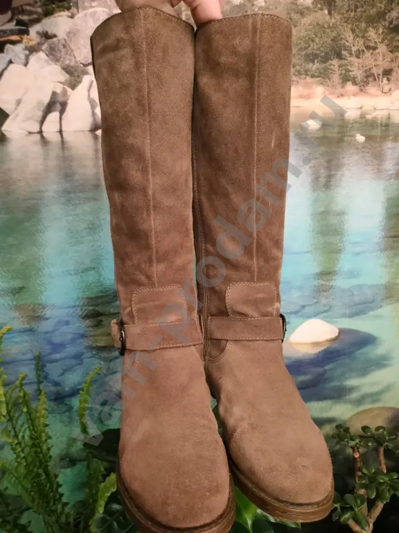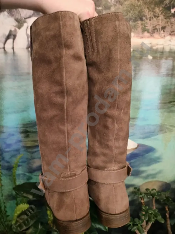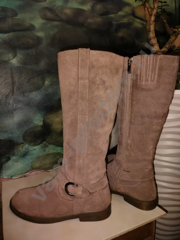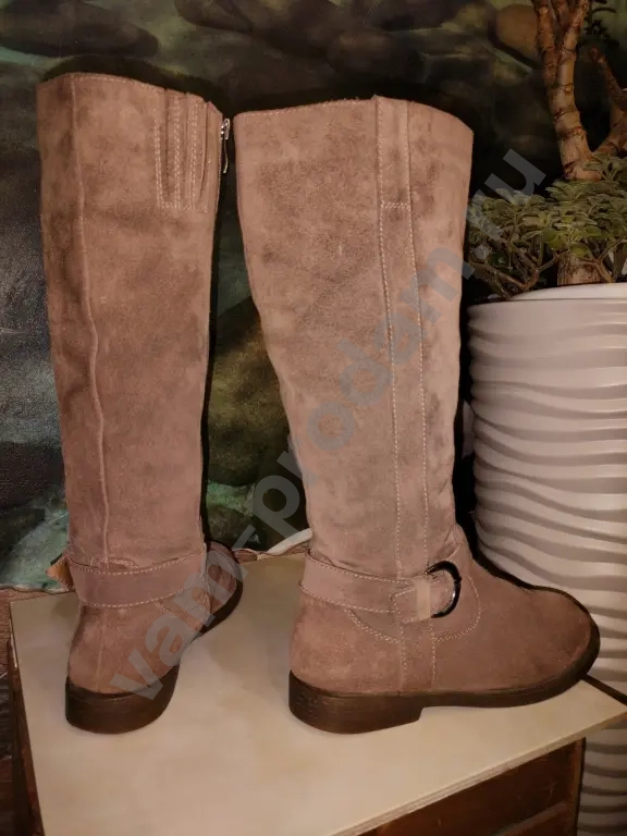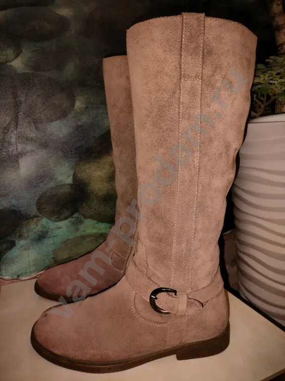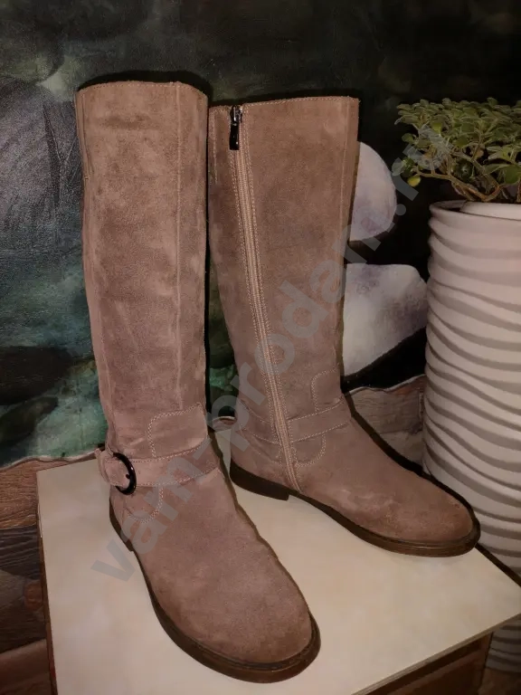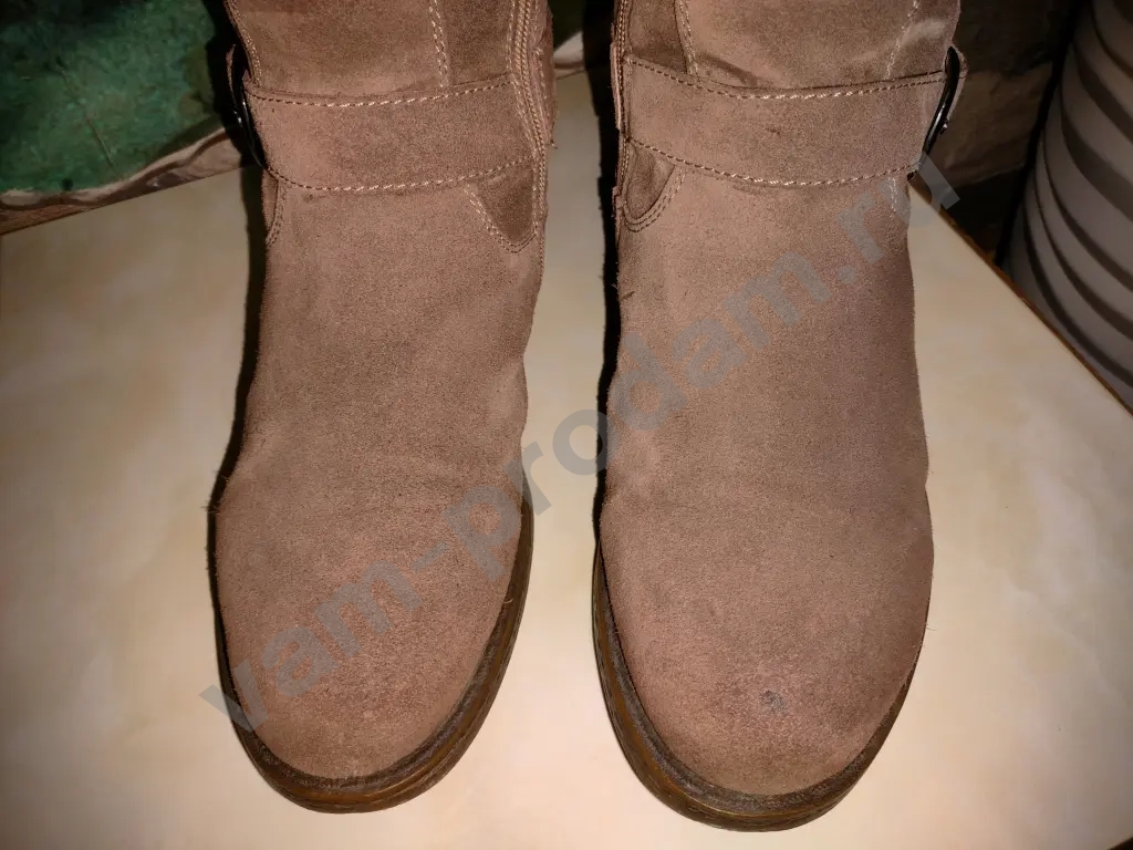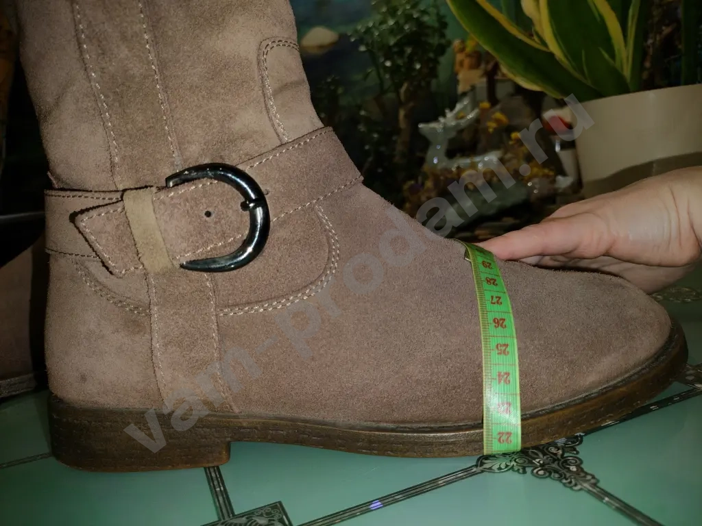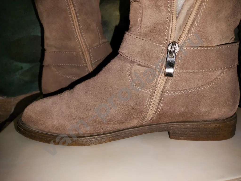 Продаю демисезонные сапоги из натуральной замши, ТМ Danza°. Подходят на среднюю и широкую стопу. Цвет замши сложный и красивый - бежевый, уходящий в коричневый с оттенком какао. Внутри в зоне голенища короткий иск.мех.