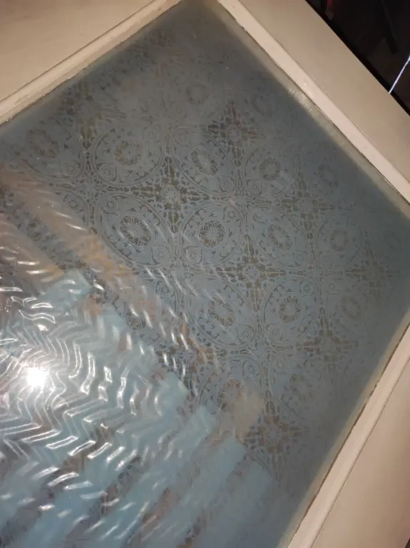 Материал: массив дерева, двойное стекло, между ними плёнка с узором.
