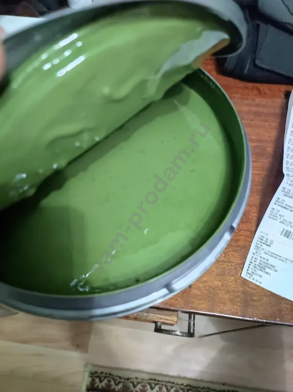Продам краску два ведра, колерованная, цвет оливковый и зелёный. Краска новая, покупали себе, но ошиблись с выбором цвета.
