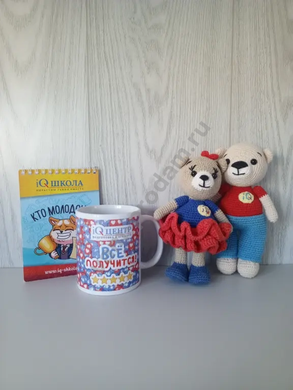 набор для ребёнка IQ центр. подарочный набор. 2 вязаных мишки кружка и блокнотик.