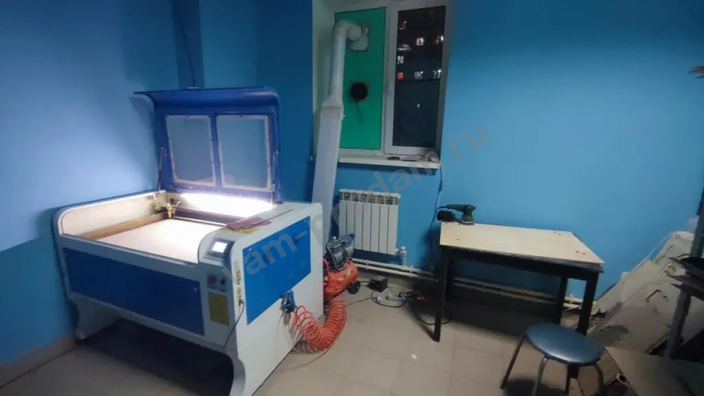 - Лазерный станок CO2 1000x600 Ruida, с автоматической подачей воздуха под гравировку и резку. Труба Reci w1(75-90Вт)