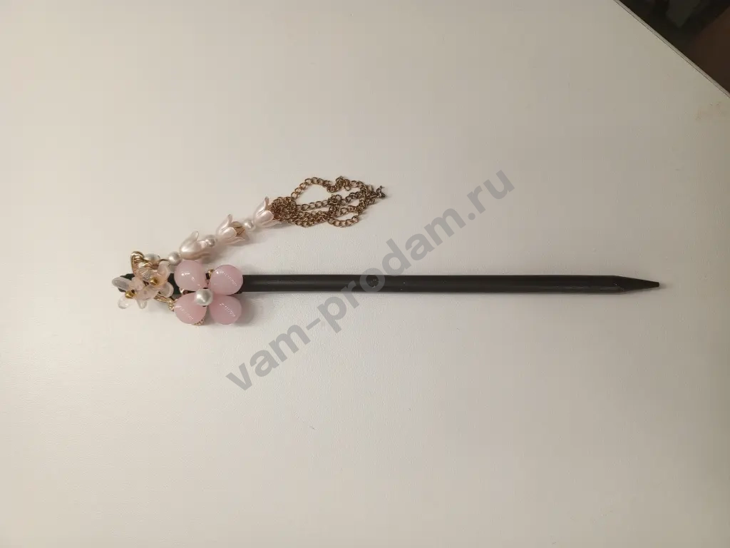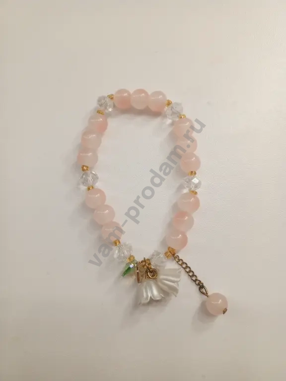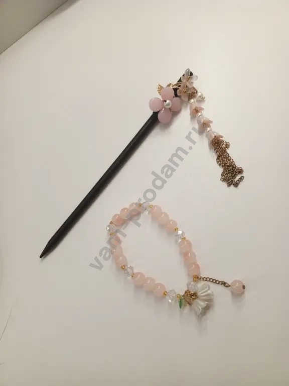 розовая шпилька с бусинами в виде цветка и розовый браслет.
