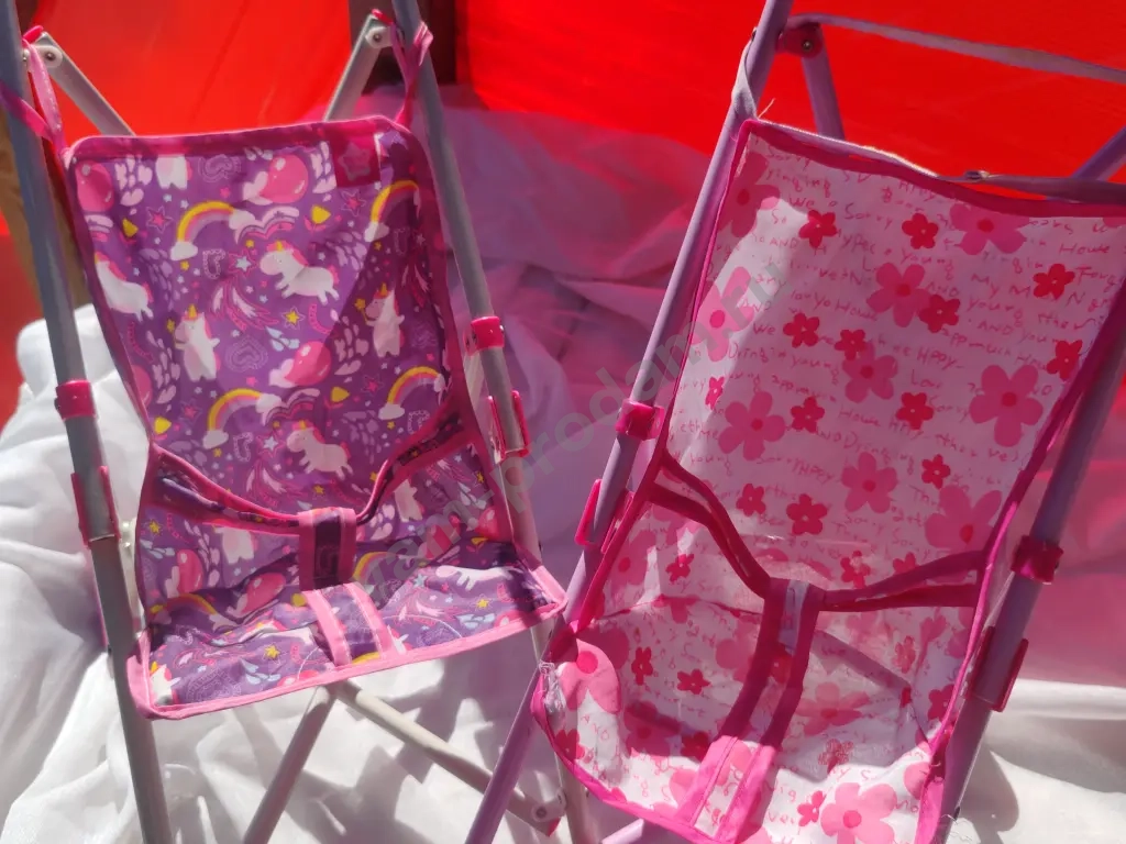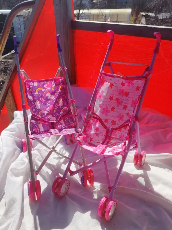 Правая в отличном состоянии, левая немного порвана ткань, есть сменная ткань для коляски, все механизмы целые