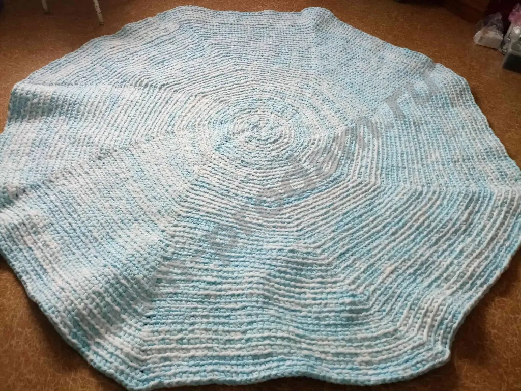 Продаю новый вязаный крючком ковёр размером 225*225см. Этот уникальный предмет интерьера выполнен в нежных голубых тонах с изящным узором, плотной вязки, который добавит уют и стиль вашему дому. Ковёр идеально подойдёт для использования на полу или как декоративная накидка на диван. Он мягкий , очень тёплый и приятный на ощупь, что делает его комфортным для отдыха.