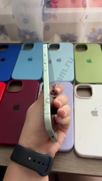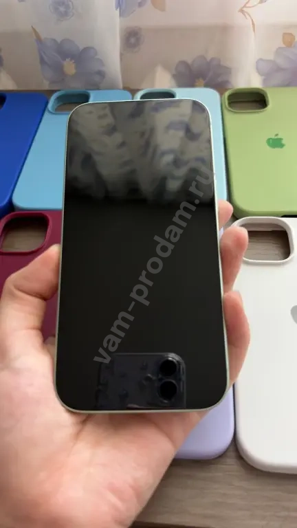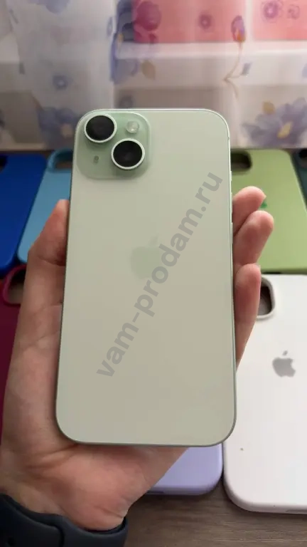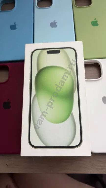 Продаю свой iPhone 15 с объемом памяти 128 ГБ в зеленом цвете. Телефон в идеальном состоянии, без дефектов на экране и корпусе. Состояние АКБ: 87%. В комплекте идет оригинальная коробка. Также добавляю много чехлов, которые видно на фото, плюс два стекла.