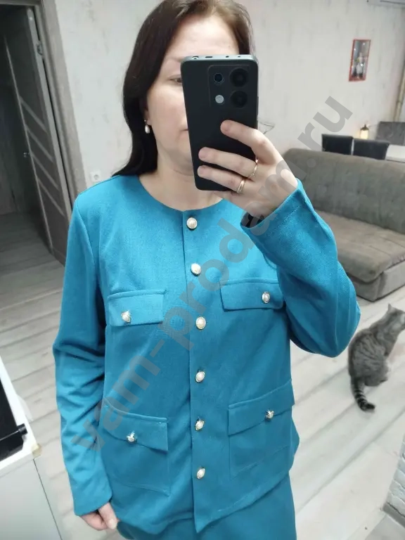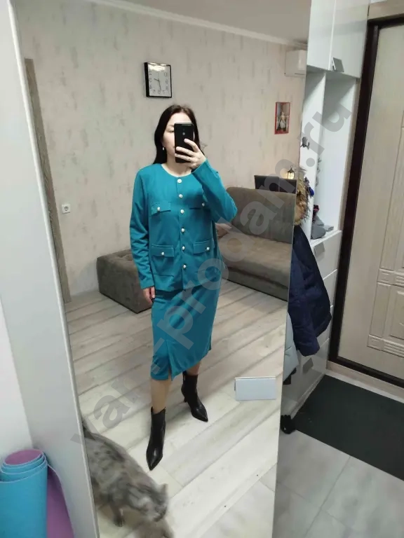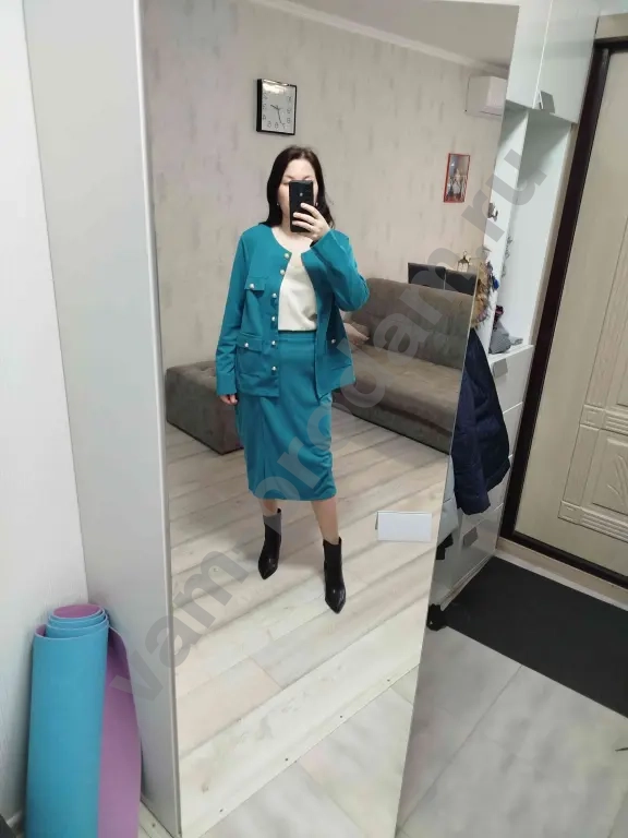 трикотажный костюм с юбкой на резинке в стиле Chanel