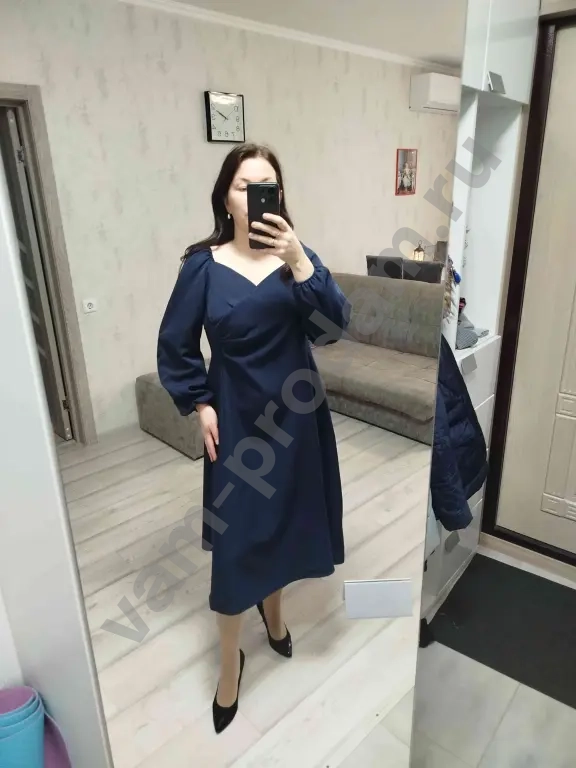 элегантное платье пышными рукавами и эффектным вырезом
