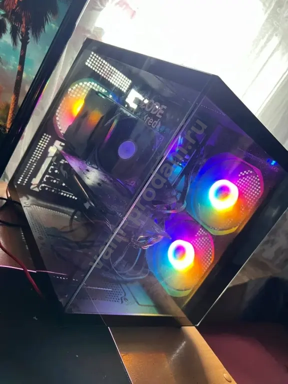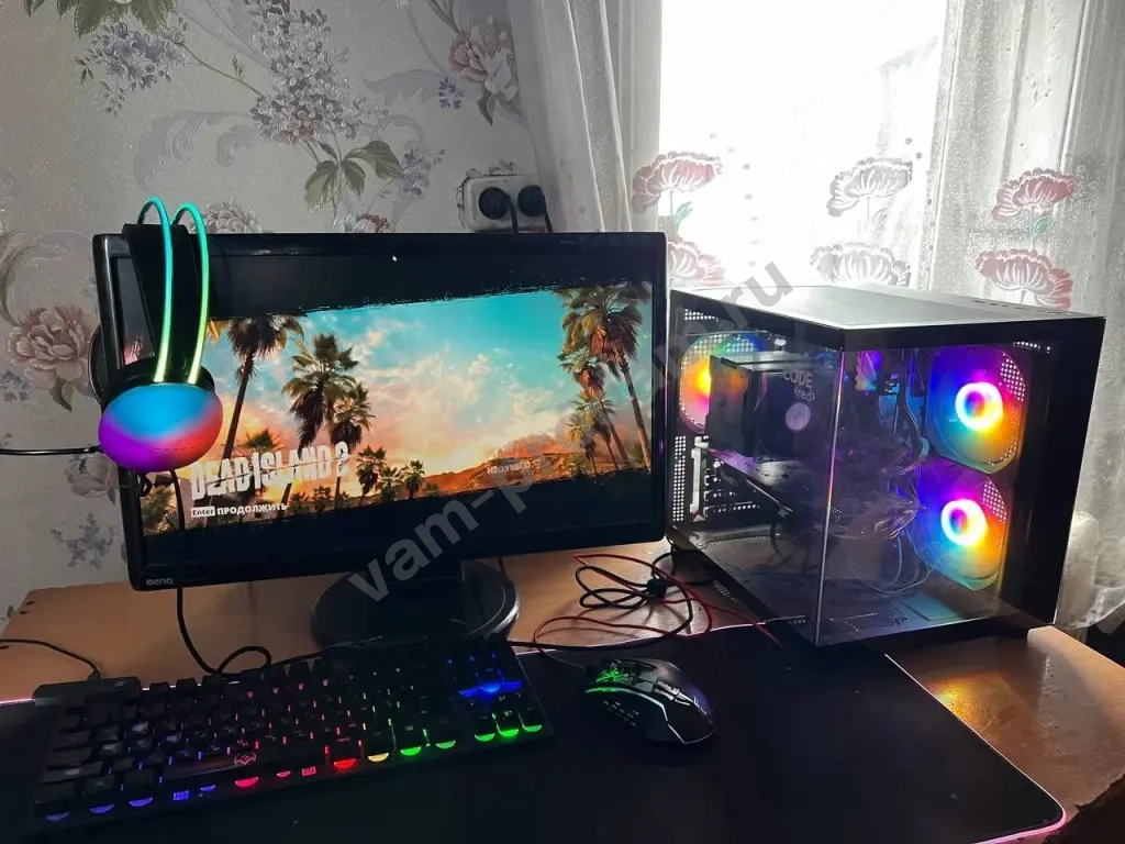 Продается игровой ПК в хорошем состоянии. Корпус с прозрачной боковой панелью и подсветкой. В комплекте идет монитор, клавиатура и мышь с подсветкой, а также наушники.