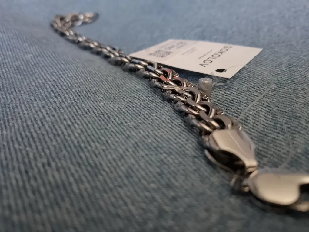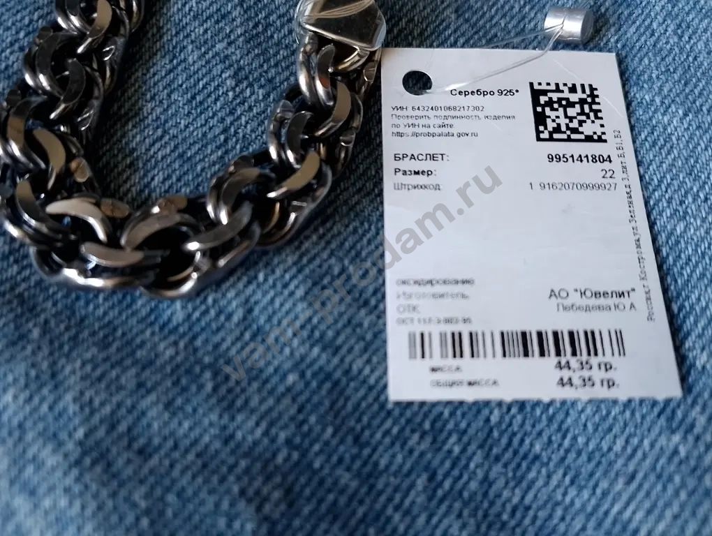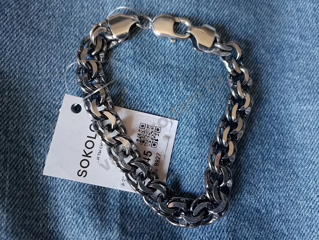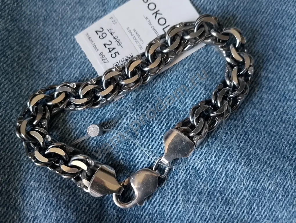Новый мужской браслет "Бисмарк", брэнд SOKOLOV, 44 гр., проба 925, размер 22 (полная длина 23 см), чернение, шлифовка; ширина 11 мм, толщина 5 мм. Бирка в наличии, не срезана. Подлинность по УИН на сайте Пробирной палаты (указан на бирке)