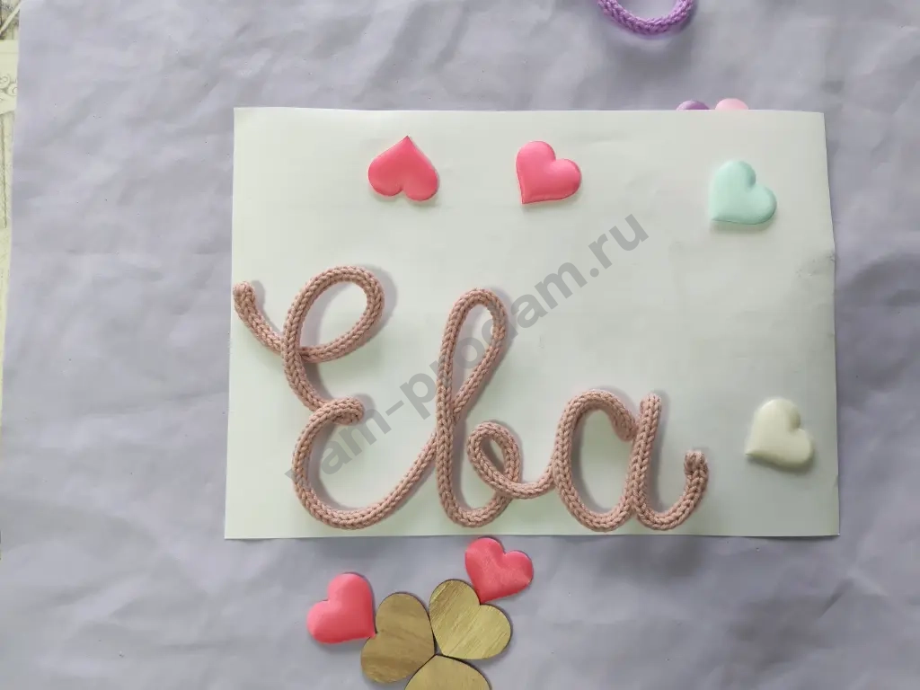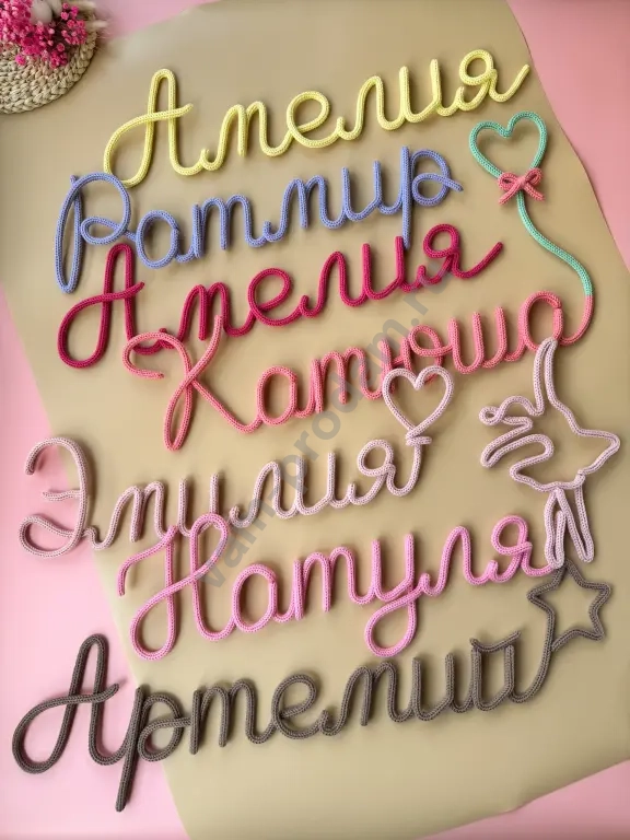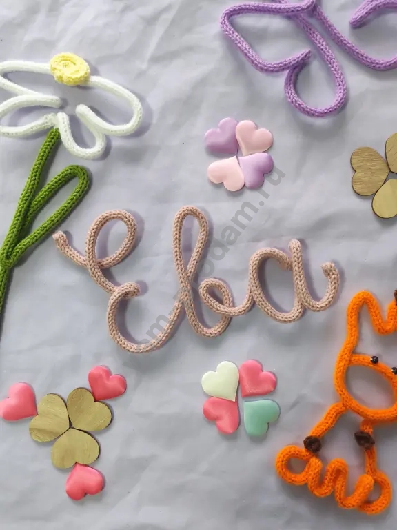 Представьте: мягкий свет, уютная комната и на стене — имя вашего ребёнка, сплетённое с любовью. На фото — пример нашего исполнения: имя «Eвa» в нежном бежевом цвете.
