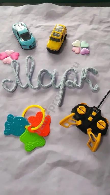Представьте: мягкий свет, уютная комната и на стене — имя вашего ребёнка, сплетённое с любовью. На фото — пример нашего исполнения: имя «Мврк» в нежном голубом цвете.