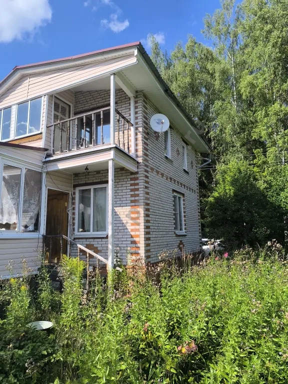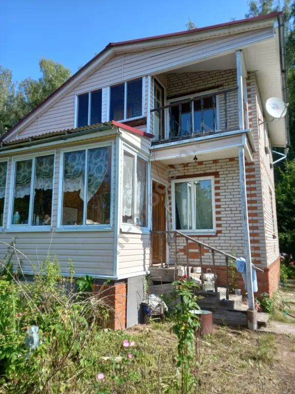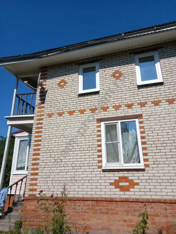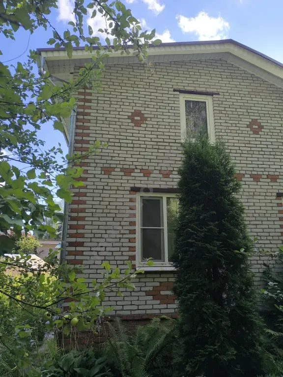 На участке расположен двухэтажный кирпичный дом с террасой и балконом. Пластиковое остекление, крыша профнастил, отопление печное, для круглогодичного проживания.