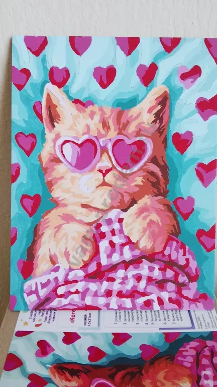 Картина по номерам "Котёнок в одеяле" (готовая)