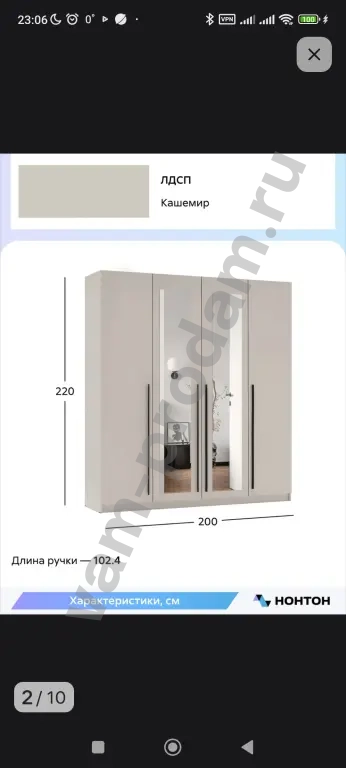 Шкаф распашной Тервис с двумя зеркалами, кашемир