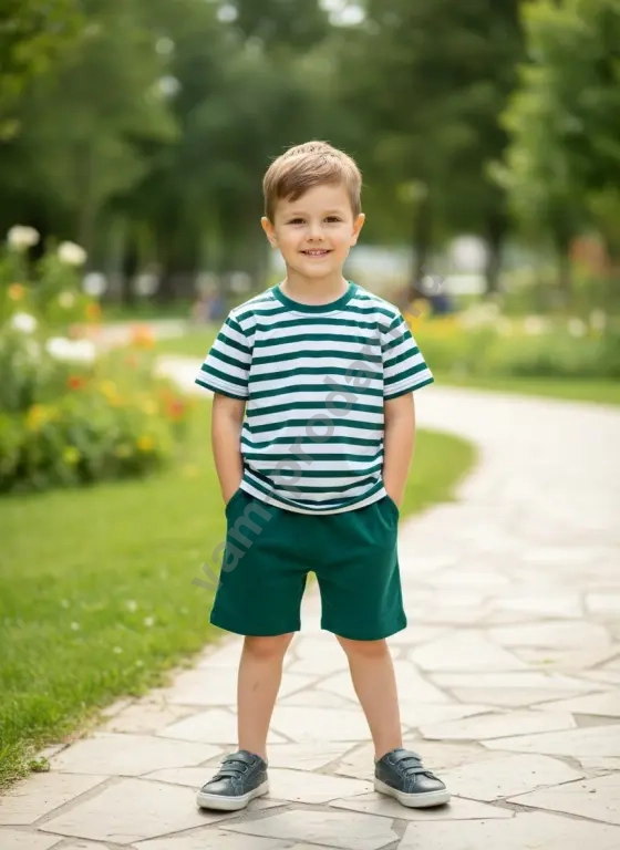 Предлагаем вам стильный детский костюм в полоску! Этот комплект включает в себя шорты и футболку, идеально подходящие для активных игр и летних прогулок.