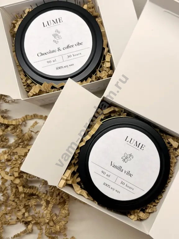 Каждая свеча упаковывается в индивидуальную коробочку.