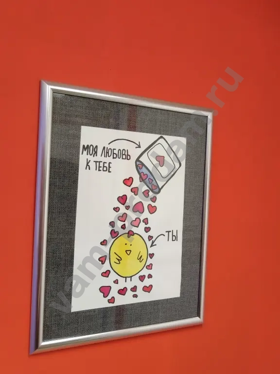 Подарочный постер с оригинальным акварельным рисунком, оформленный в стильную рамку. На постере изображен милый смайлик, который символизирует любовь к кому-то, а вокруг него разбросаны сердечки. Это не просто декоративный элемент, но и искреннее признание в чувствах. Размер постера составляет 33см на 43 см, что делает его идеальным для размещения в любом интерьере.