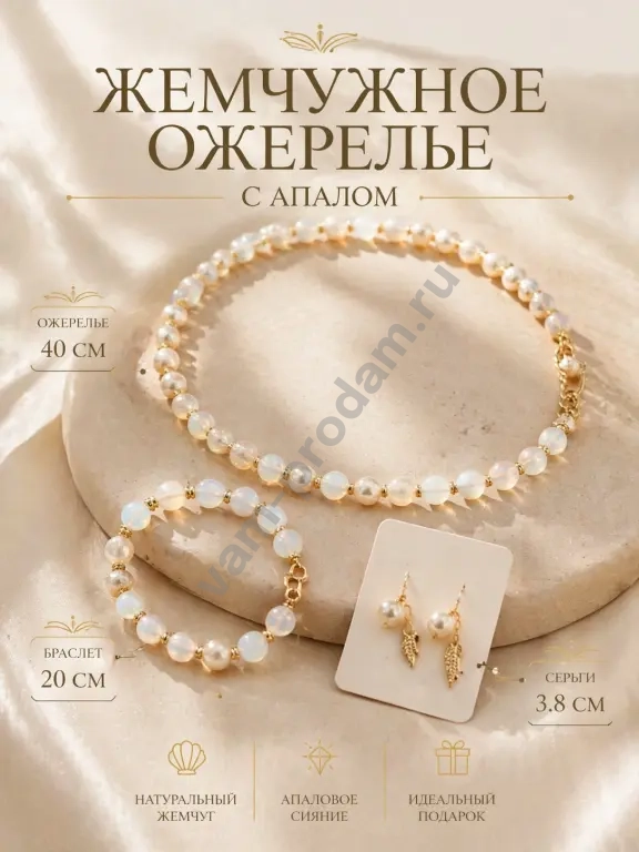 Комплект украшений из жемчуга с апалом с позолоченной фурнитурой