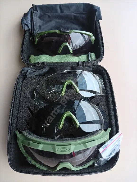 Очки тактические в комплекте: футляр для очков, очки с фиксационной резинкой, очки с душками, 2е сменных стекл, ремешок для крепления, салфетка, 2 футлярных мешочка.