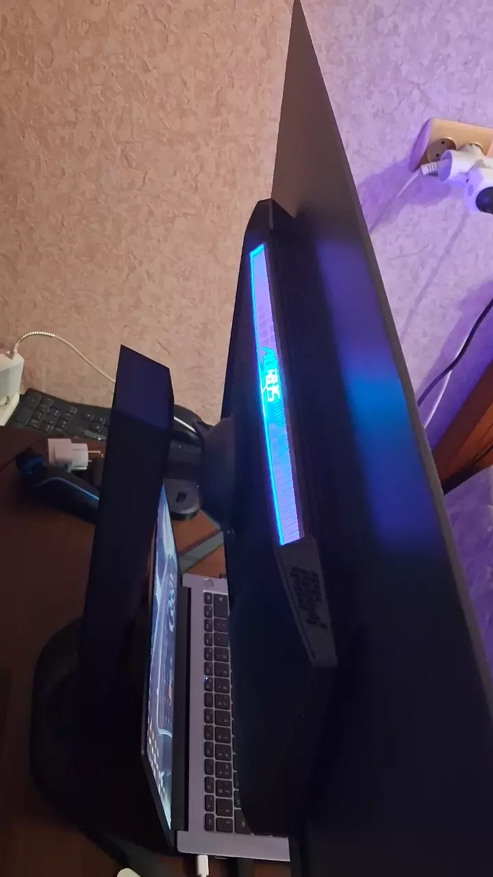 Монитор AORUS, матрица идеальная — без битых пикселей, царапин и засветов Проблема: мигает разными цветами при включении. Звук идёт. Комплект полный коробка как новая. Продаётся на запчасти отличный донор матрицы.