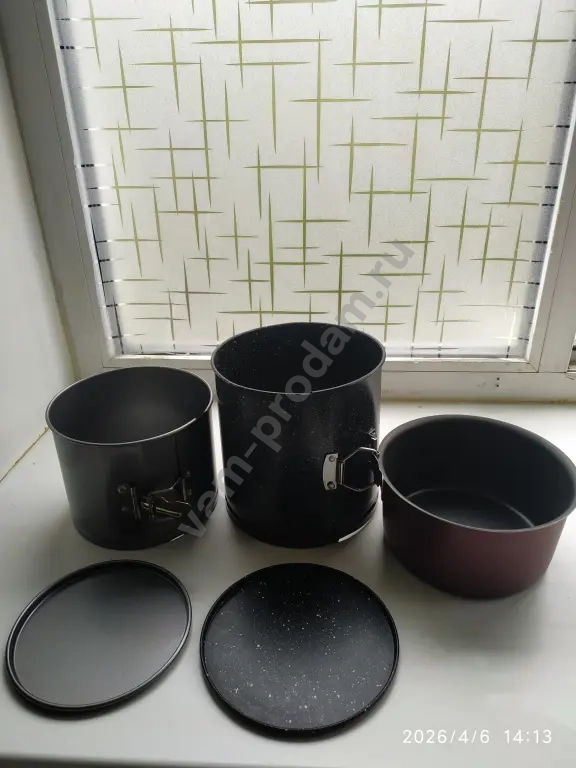 формы для кулича- выс16.5см, 12см,9см.форма для пиццы, форма для торта ,для кекса маленькие по 6шт. цена договорная. только самовывоз.