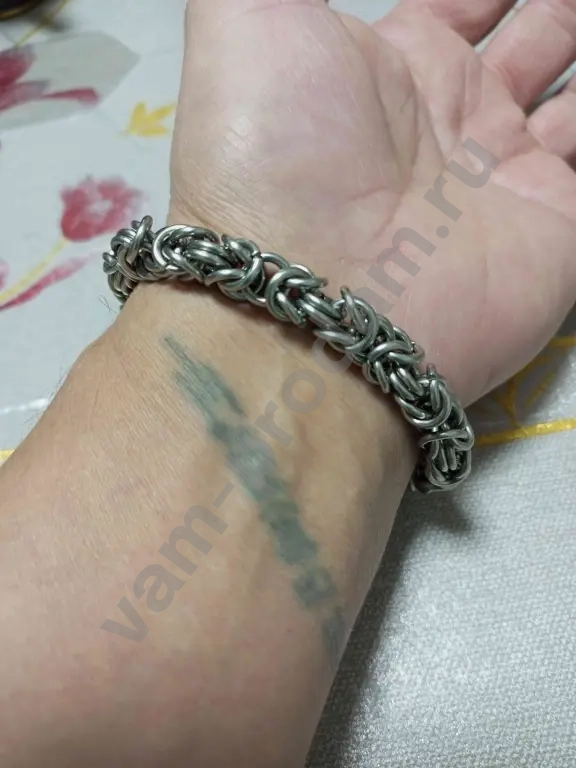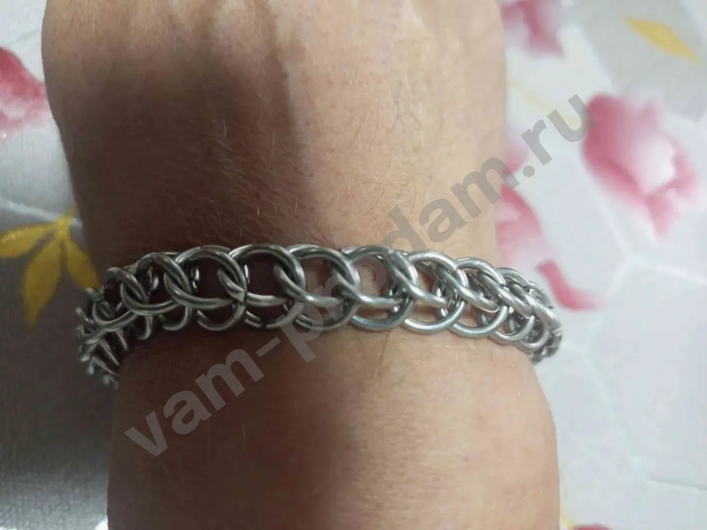 Браслеты и цепи кольчужного плетения, нержавеющая сталь ,диаметр проволоки 1,6мм.Длина любая. Можно на джинсы или на шею.3000 рублей за 1 метр. Браслет 1100 рублей. Дополнительные фото по запросу.