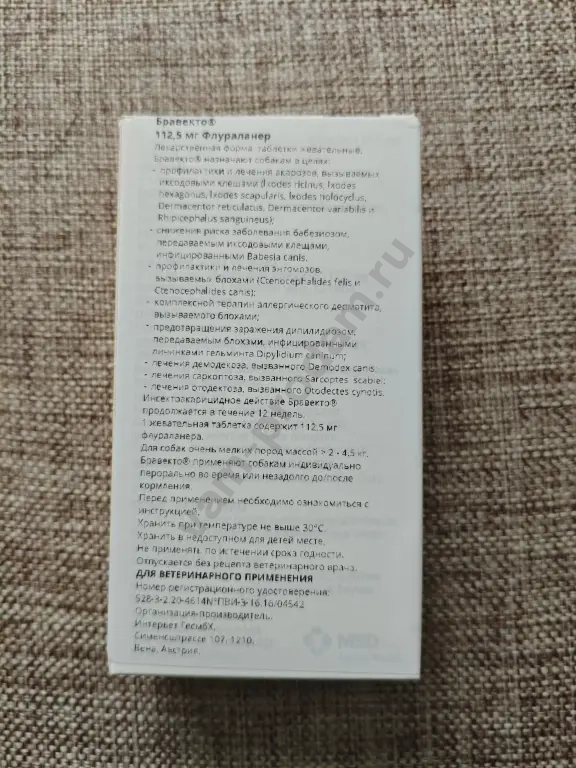 Продам «Бравекто» средство от блох и клещей для веса 2 — 4.5 кг (внутри 1 таблетка, длительность 3 месяца).