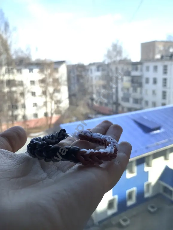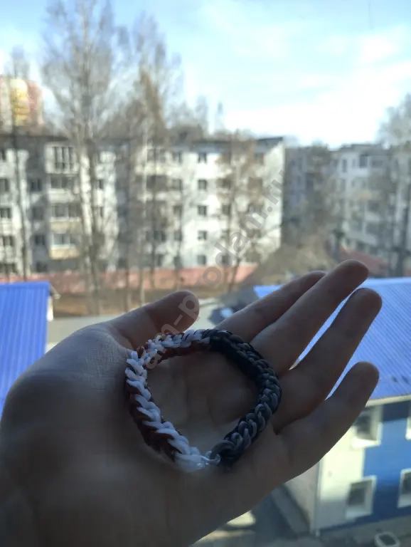 Браслет из резинок в черно-серо-коричнево-белом цвете.