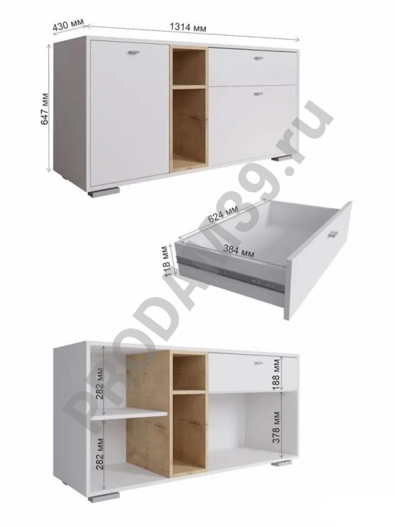 Габариты (В x Ш x Г) 647 x 1314 x 430 мм