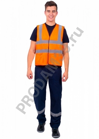 Жилет сигнальный ЖИЛ004, п/э (120 гр), 4СОП, оранж