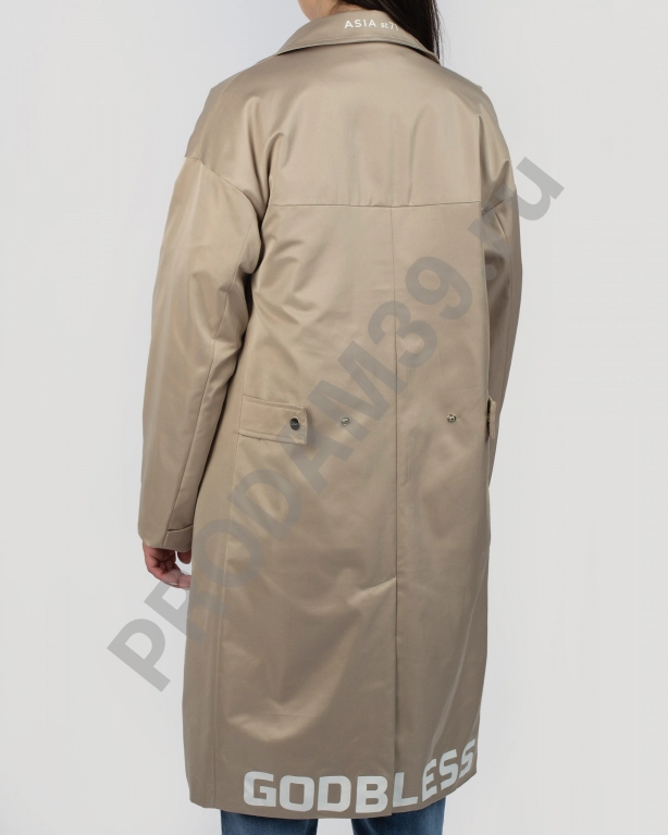 Тренч unisex, подойдёт и мужчинам, и женщинам. Представлен в бежевом цвете с подкладкой в тон. Модель длины миди со спущенным плечевым швом, широкими лацканами с дополнительным декоративным элементов для возможности застежки под горло в ветреную погоду и прорезным карманом спереди. Паты на рукавах идут с кнопкой для возможности утяжки обхвата индивидуально под Вашу кисть. Сзади на спине кнопки в виде имитации пояса для регулировки обхвата талии. Принт в виде фирменной стрелки на левой части ворота, сзади на вороте - в виде лейбла и на подоле в виде надписи Godbless выполнен с помощью специализированной пленки контрастного цвета. Сзади у подола шлица для комфортного движения. Используется брендированная фурнитура.