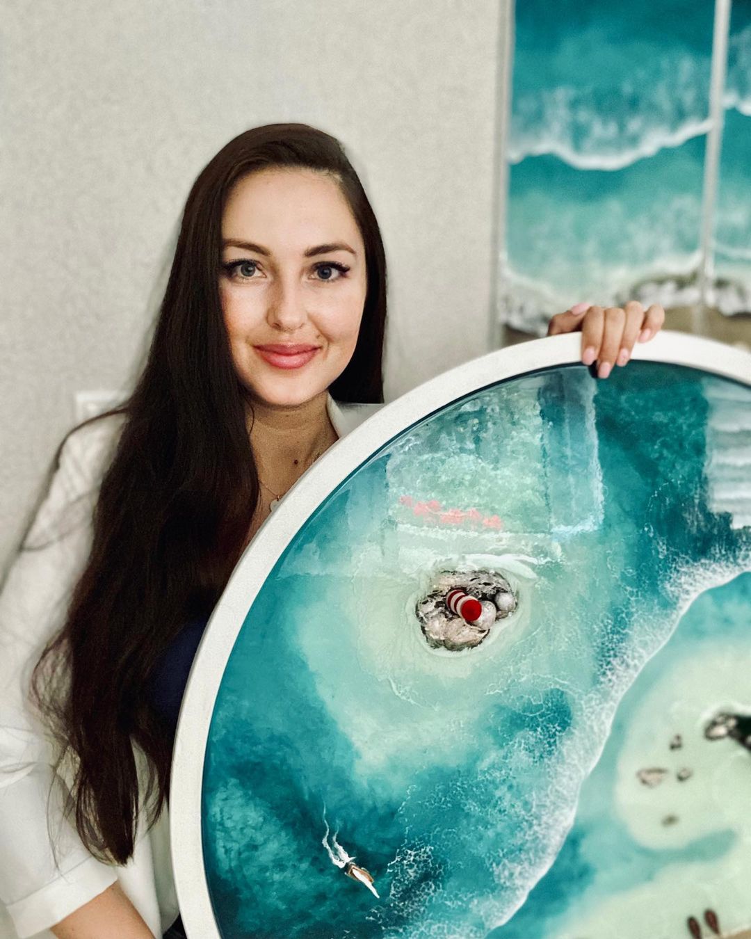 Всем привет! Я - Евгения - художник по морям в технике resin art (эпоксидная смола). Создаю подарки для самых близких, декор и картины с видом на мечту.