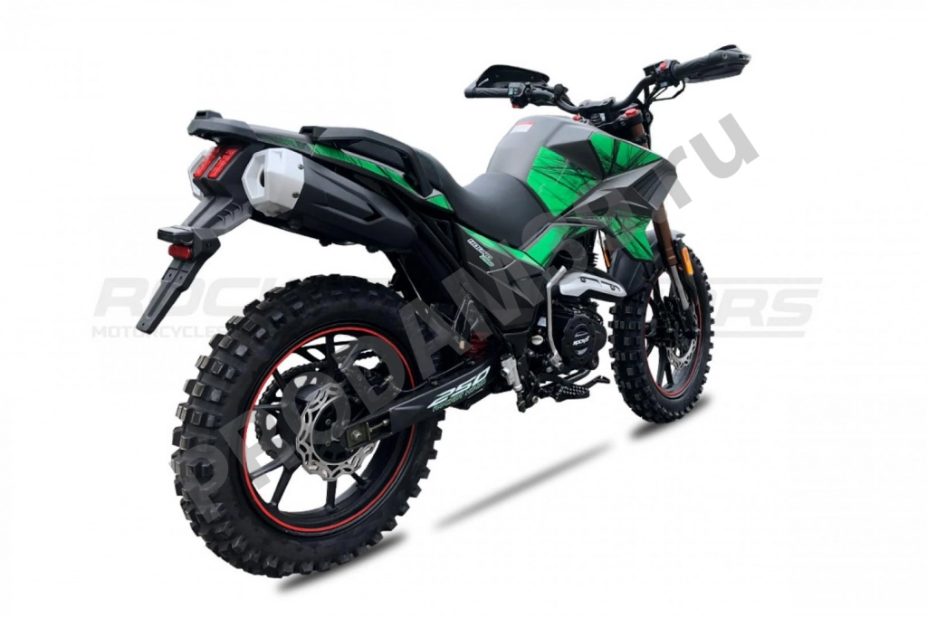 Тип товара: МотоциклПроизводитель: Rockot Motors (Рокот Моторс)Производитель двигателя: ZongshenМощность (л.с.): 17Тип мотоцикла: кроссовыйНаличие ПТС / ПСМ: без ПТСТип двигателя: бензиновый, 4-х тактныйМодельный год: 2022Рабочий объем (см3): 223Система охлаждения: воздушнаяТип стартера: электростартер / кикстартерЕмкость топливного бака, л: 13Диаметр колес: 17/17Вес (кг): 140Модель двигателя: 4Т 167FMM, с балансировочным валомСистема питания: КарбюраторМеханизм переключения передач: 1-N-2-3-4-5Количество цилиндров: 1Тип трансмиссии: механическаяЧисло передач: 5Колёса: 4,60-17/5,10-17 (алюминиевые)Габариты в транспортировочном состоянии, мм: 1825x480x860Тип пер. тормоза: Дисковый гидравлическийТип зад. тормоза: Дисковый гидравлическийГабаритные размеры, мм: 2100x800x1380Высота по седлу, мм: 820Колёсная база, мм: 1360Усиленная рама: Стальная, усиленнаяМаятник: СтальнойПодвеска задняя: Моноамортизатор с прогрессиейПодвеска передняя: Телескопическая, перевернутого типаЦвет: ЗеленыйКлиренс, мм: 260Бренд товара: Rockot Motors