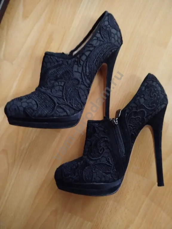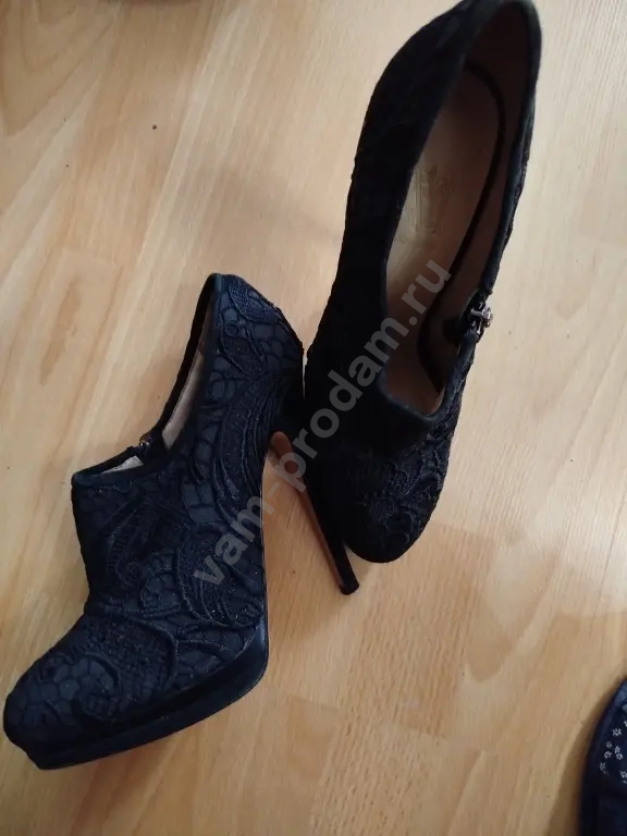 Туфли одеты 1 раз.Кружевные,нарядные,качественные.Размер-39,каблук-14см.Покупала дорого.Логотипы присутствуют на подошве,замке молнии.