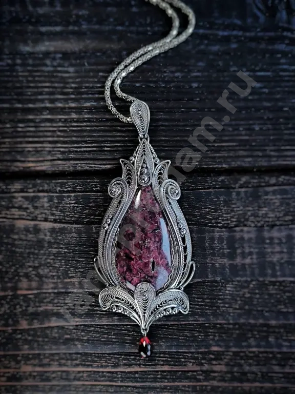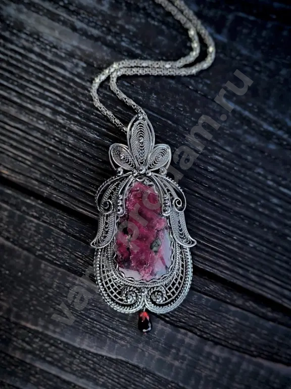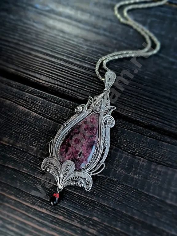 Все выполнены в единственном экземпляре. Филигрань без штамповки и литья чисто ручная работа. Камень Эвдиалит с Кольского полуострова. Бриалет из граната Танзания Африка.