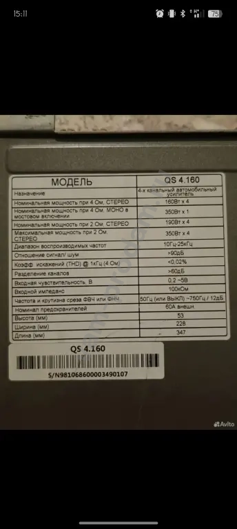 Мощность RMS (4 Ом), Вт : 4 x 160
