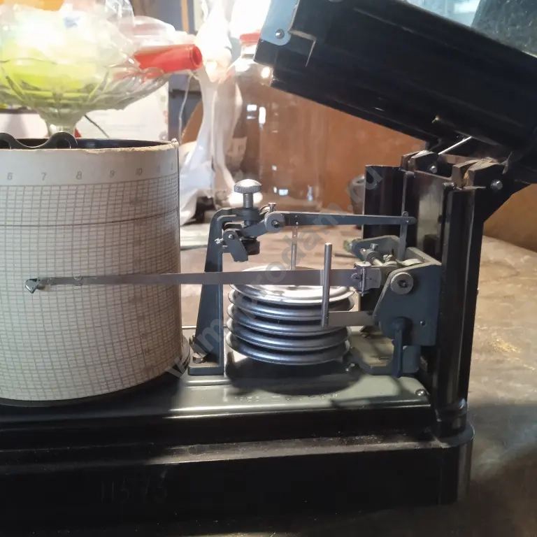 Судовой барограв, самописец. Красивая штука для интерьера, в рабочем состоянии, заводится тикает, чертит. Годная вещь для домашней или профессионалы метеостанции. записывает атмосферное давление в реальном времени, по записям можно прогнозировать погоду.