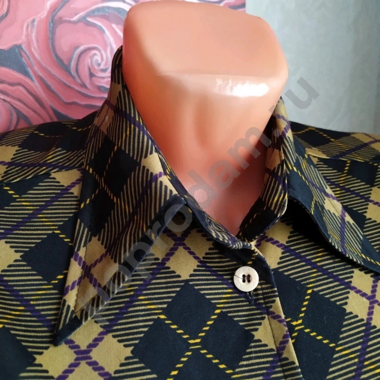 Рубашка-блузка имеет длину по спинке — 60 см от ворота до низа — 63 см.