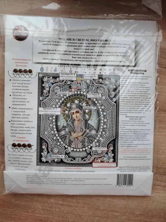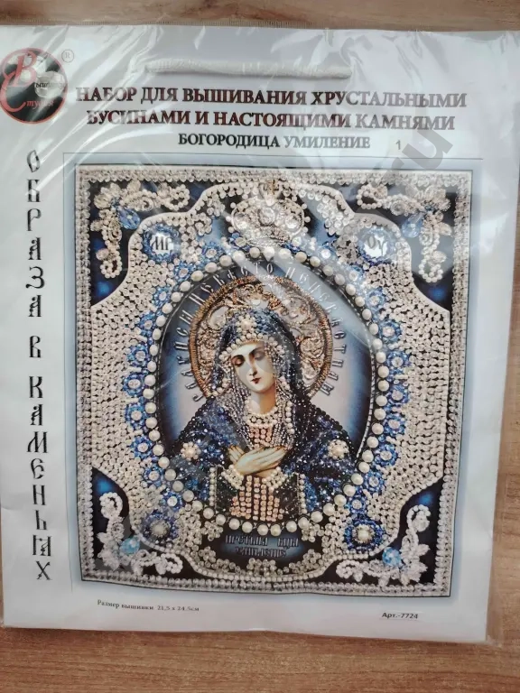 Набор для вышивания хрустальными бусинами и настоящими камнями (жемчуг майорка) "Богородица Умиление". Размер вышивки 21,5 х 24,5