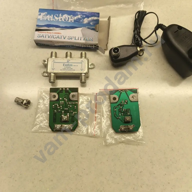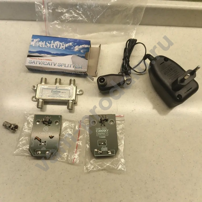 Усилитель для уличной антенны телевизора с блоком питания и разветвителем на 4 телевизора