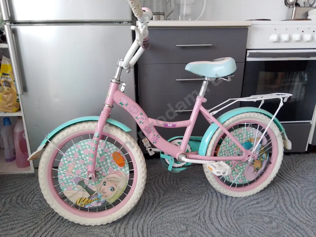 продам велосипед для девочки 4-8 лет. новые шины, черного цвета стоят, диаметр колеса 16', есть два задних поддерживающих колеса для начинающих.