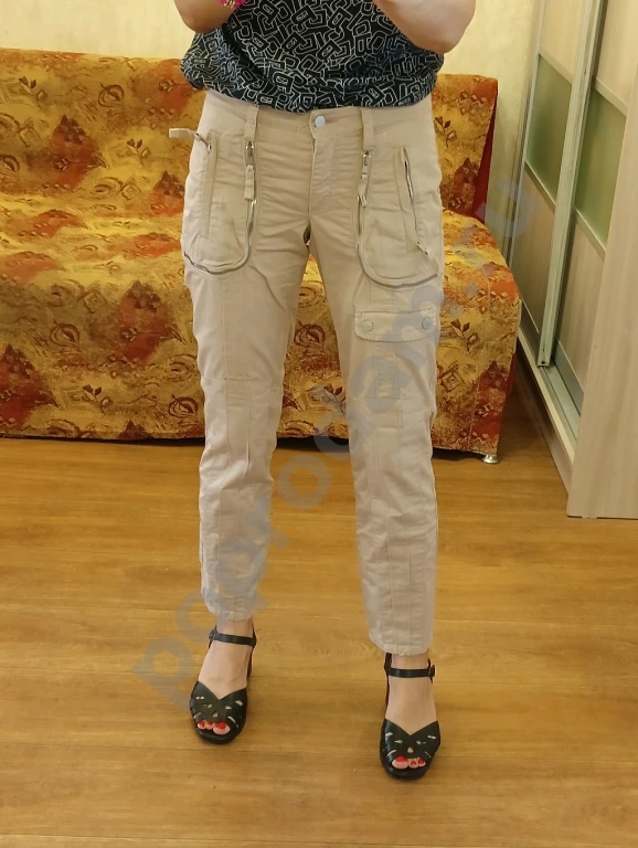 джинсы бежевые с заниженной талией