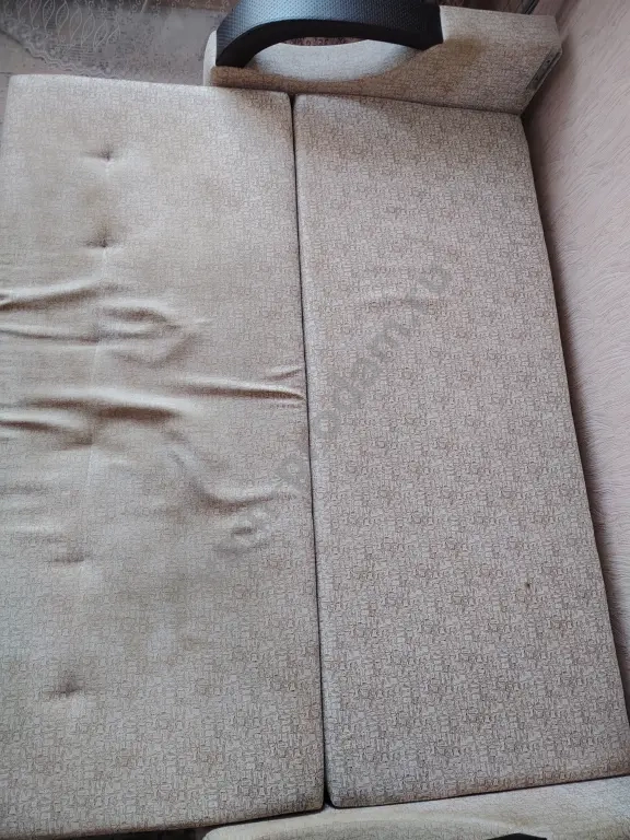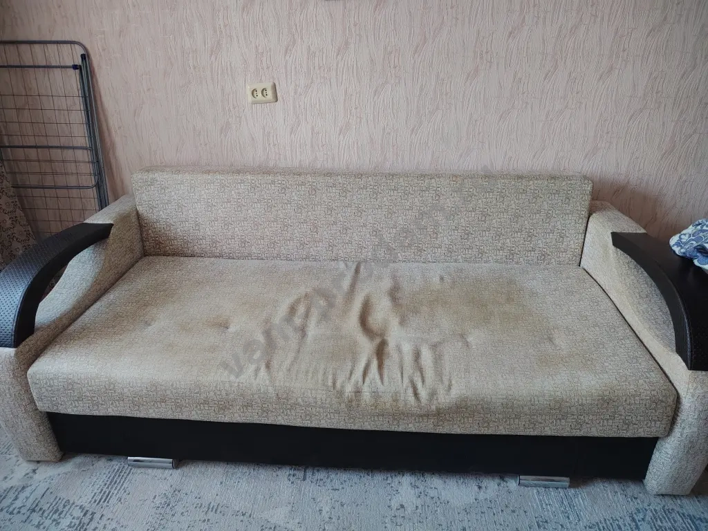 Диван раскладной, тип раскладного механизма:пантограф.Ширина 220см., глубина 100см., высота 65см. Спальные место 155на 185 см. Каркас и раскладной механизм в хорошем состоянии, обивка имеет потертости. Самовынос, самовывоз.