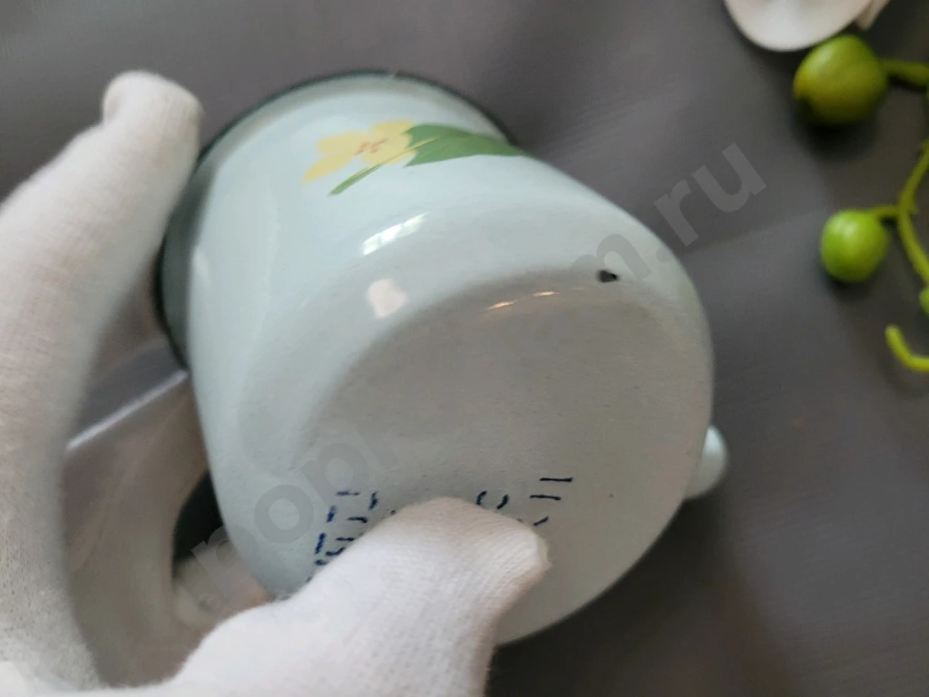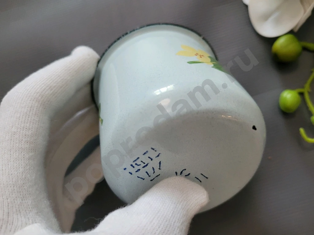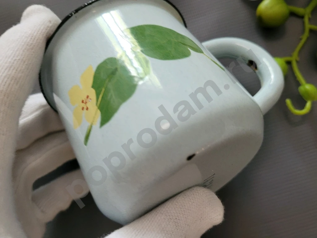 Bинтaжнaя эмaлиpованнaя кружка ССCР c клеймoм "Цветущий огуpeц"