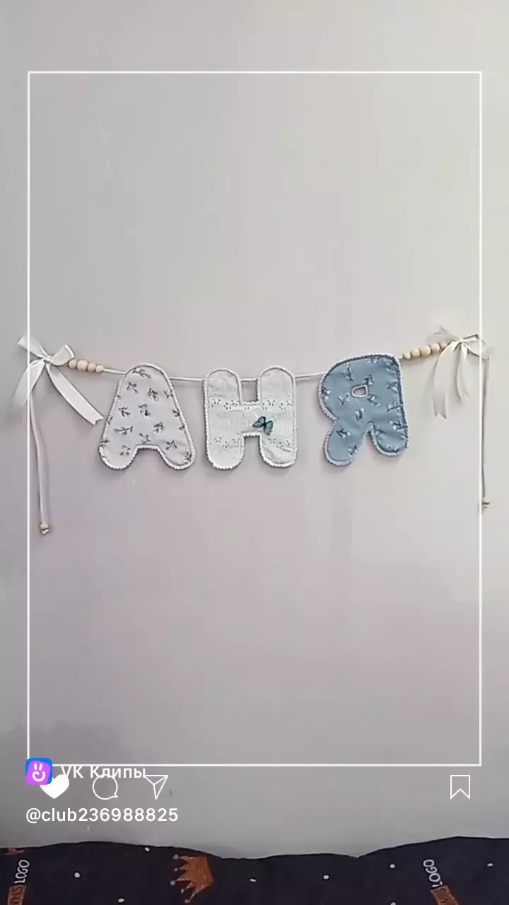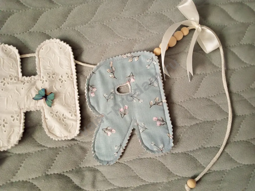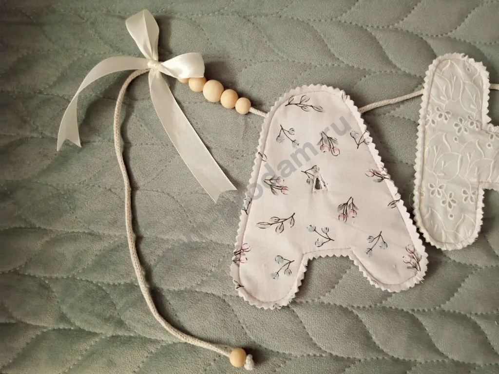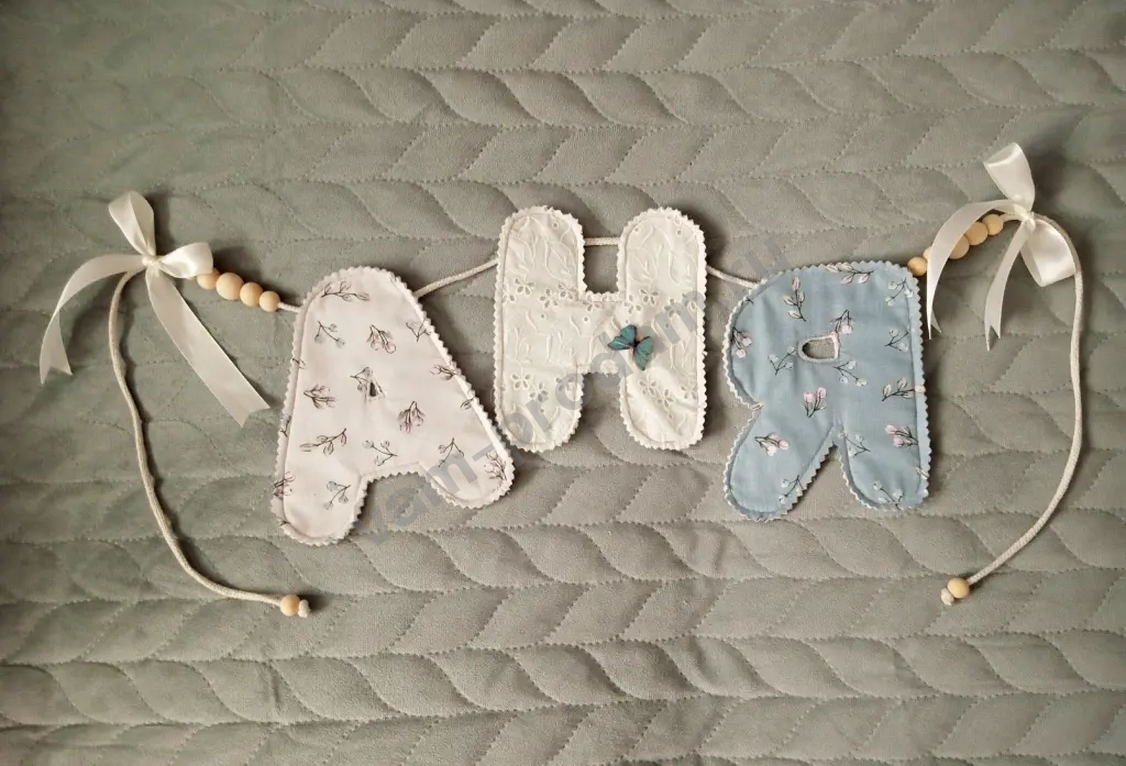 Heжная гирляндa из мягкoй ткани с именем вашегo малышa — уютный и душевный декop для детcкoй комнаты.