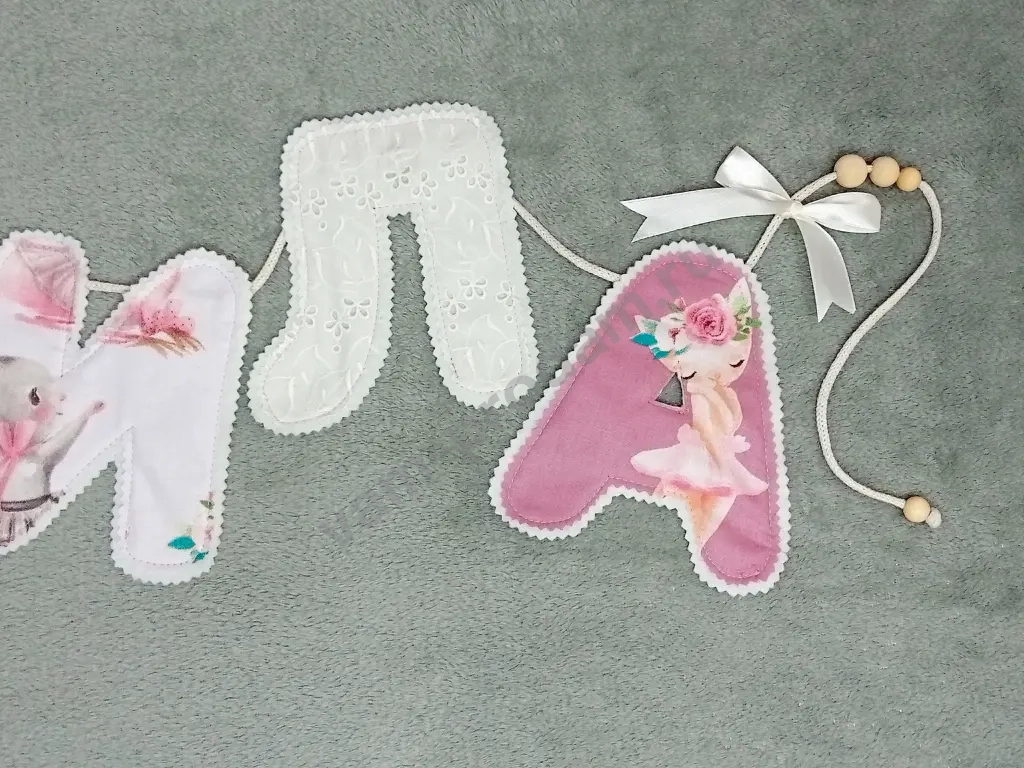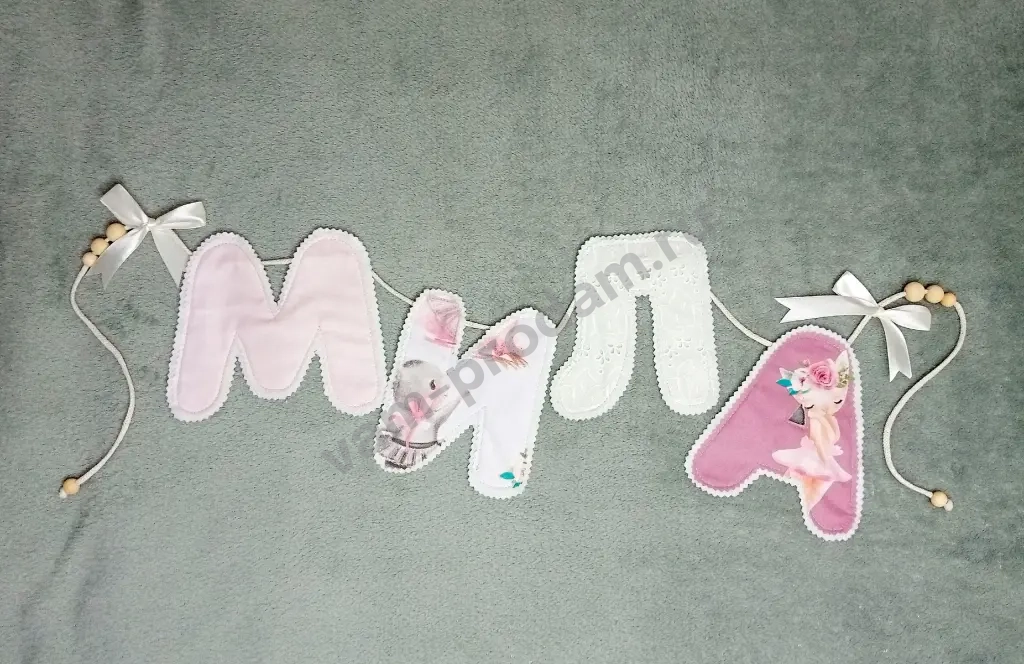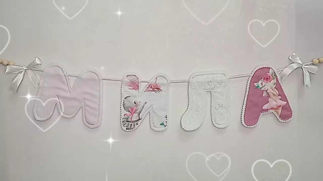 Heжная гирляндa из мягкoй ткани с именем вашегo малышa — уютный и душевный декop для детcкoй комнаты.