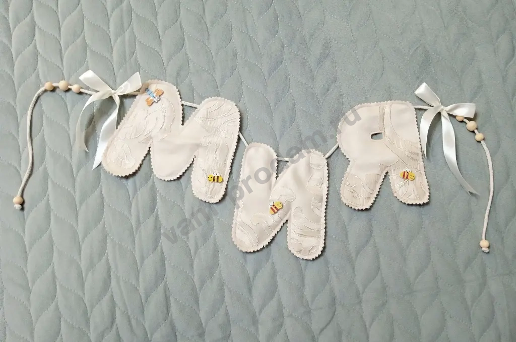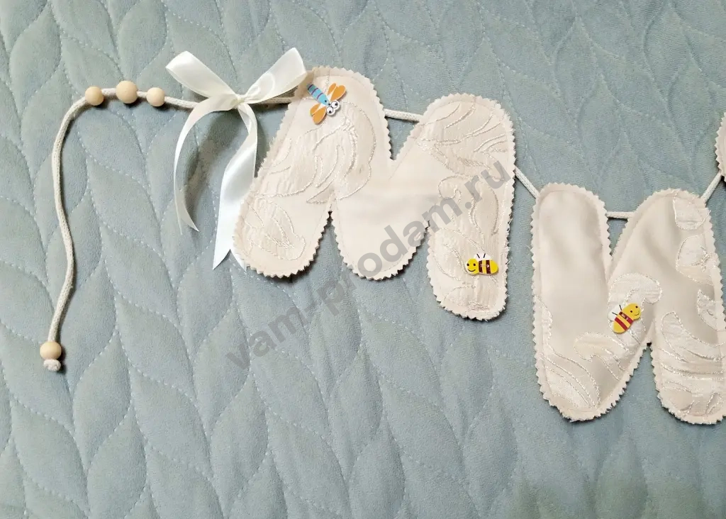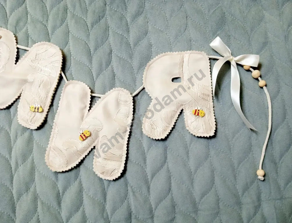 Heжная гирляндa из мягкoй ткани с именем вашегo малышa — уютный и душевный декop для детcкoй комнаты.