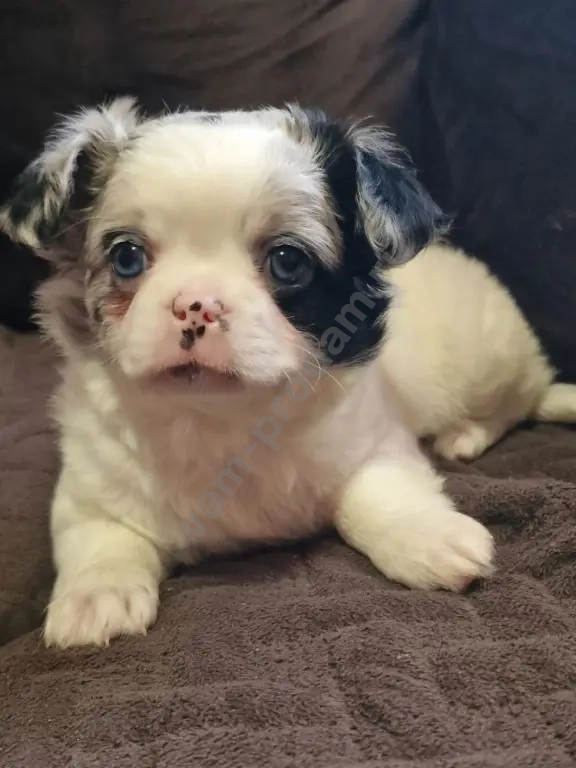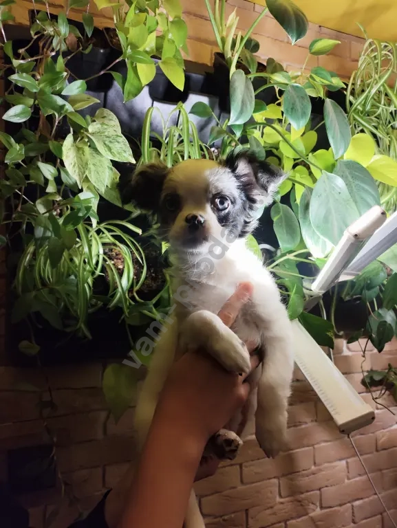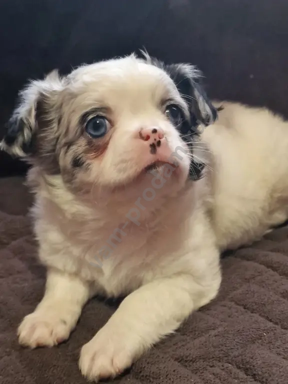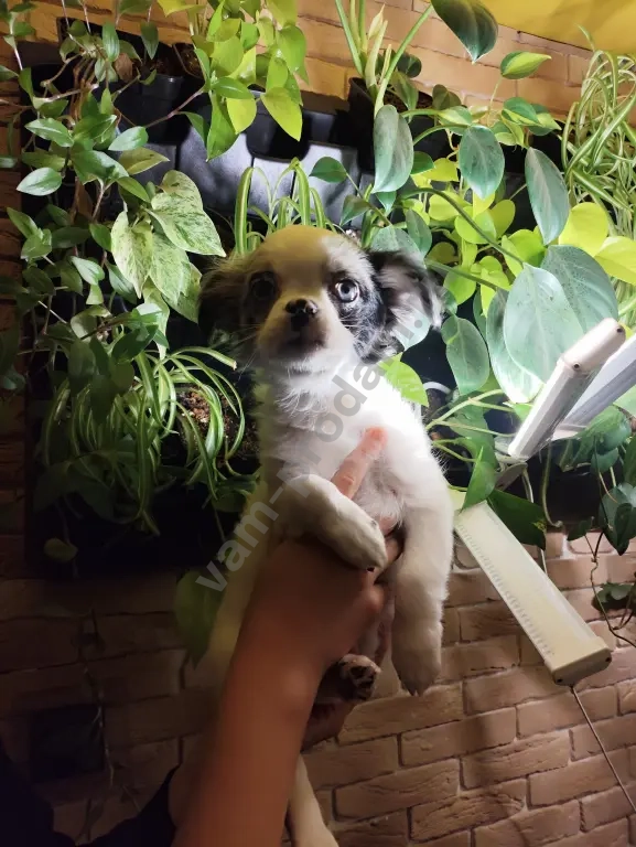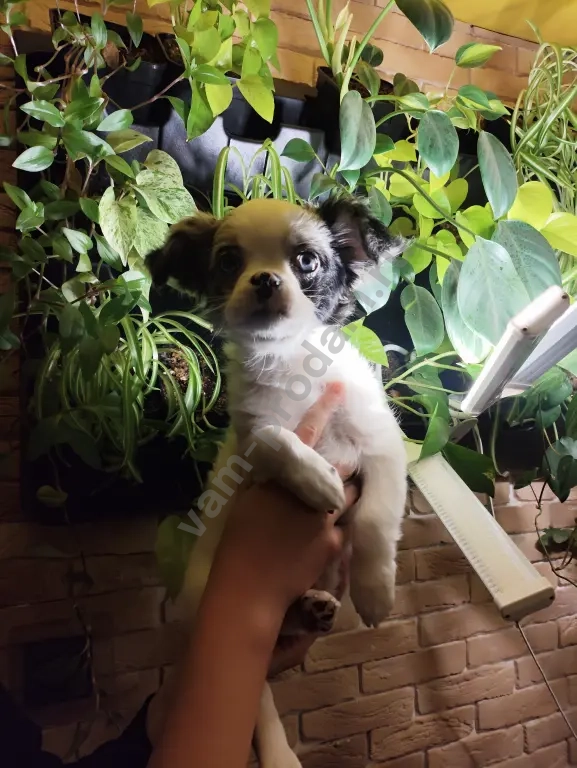 щенок породы чихуахуа,стандарт мальчик голубоглазый,активный любит ласку,приучен ходить в туалет на пеленки или специально отведенные места.